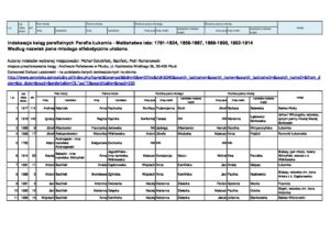 Indeksacja ksiąg parafialnych Parafia Łukomie – Małżeństwa lata 1781-1824, 1856-1887, 1889-1900, 1902-1914